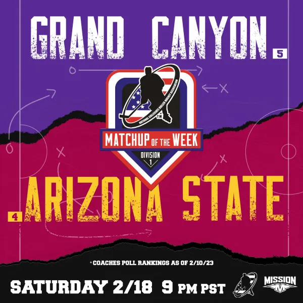 This is the 5th and final regular season matchup between the 2 WCRHL Division I teams. Arizona State leads that season series 3 games to 1, but 2 of those games were 1 -goal games, 1 a 2-goal game and 1 3-goal game. ASU has 2 players in the top 15 WCRHL scoring, while GCU has 4. The teams couldn’t be more different as GCU plays a run-and-gun style while ASU plays a more controlled, defensive game. GCU’s Aydin Schwetz leads the nation in DI scoring with 32 goals and 9 assists, and his 8 power play goals are also lead-leading. ASU’s Lane Hartwell is top 3 in Goals Against with 2.19, followed by GCU’s Guido Pacheco in 4th with 2.53. Hartwell also has the top Save Percentage in the country with over 90%.